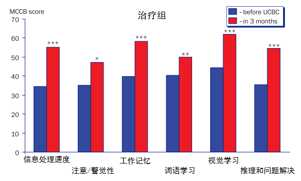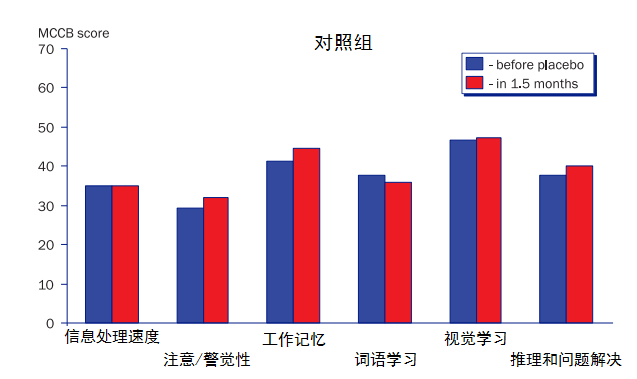 在研究者看来,最重要的结果是治疗组认知-情感亚量表的改善(图1 治疗组, p<0.001)。MATRICS共识认知成套测验(MCCB评分)也印证了这一点。